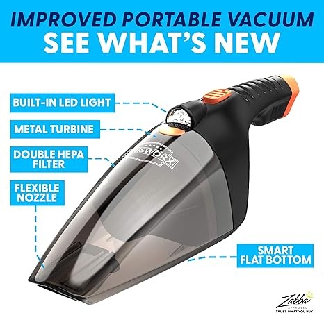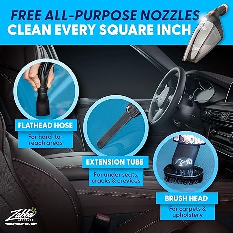 THE ULTIMATE HIGH POWER: We achieved a new high standard in automotive cleaning with our improved car detailing vacuum. Upgrades include: 110W cleaning power & 9.17 Amps, a sleek design with integrated LED light and a washable double filter. These van or truck accessories for men & women use the 12v aux outlet for power.
