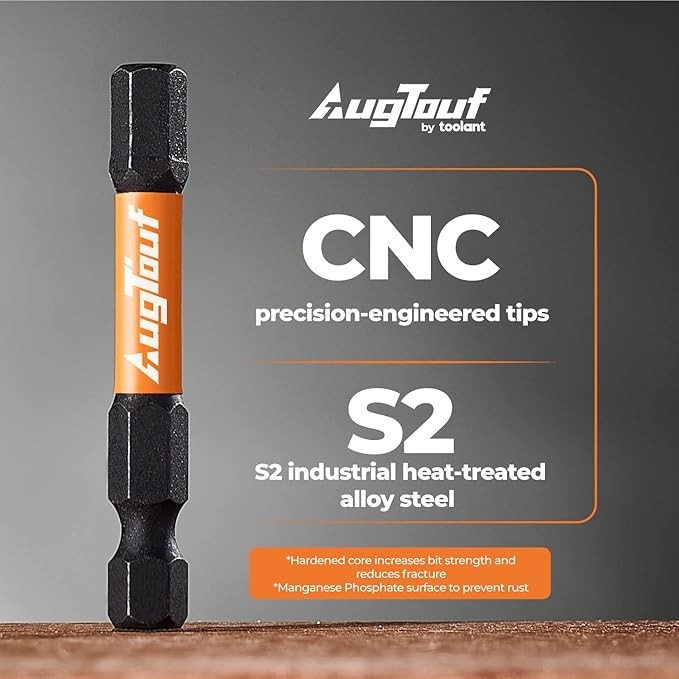 CNC machined tips, S2 alloy steel body, hardened core to increase bit strength and reduce fracture. Manganese Phosphate surface to prevent rust.