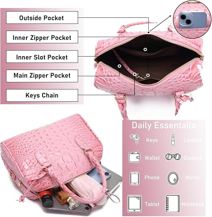 Perfect for Travel & Ideal Gift: This Handle Crocodile Purses is the ultimate travel companion and a great gift choice. Its versatile design and ample storage make it perfect for any journey. Its stylish appearance makes it a thoughtful and fashionable gift option.