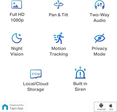 Advanced Night Vision - Sleep with peace of mind knowing that Tapo is keeping watch over your home and your little ones even at night. Advanced infrared night vision lets Tapo see in low light conditions up to 30 ft. away.