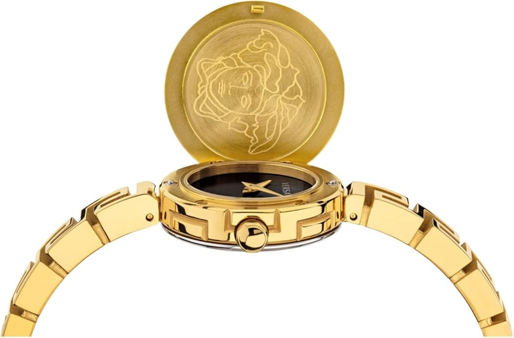 Versace Medusa Secret Collection Luxury Womens Watch Timepieces with a Gold Bracelet and Case Featuring a Black Dial