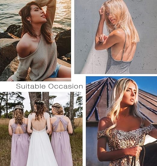 Invisible bra offers the cover and support of a normal bra without unsightly shoulder or back straps, perfect to be worn under backless, halter or evening dresses.