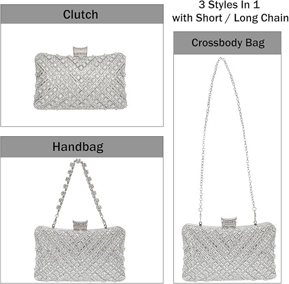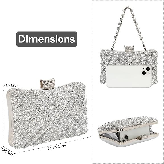 【Feature】 There are 2 parts on the surface: One part is made of Sparkly Rhinestone, another part is decorated with Sequin, which gives the whole bag a Stylish, Honorable, and Generous.