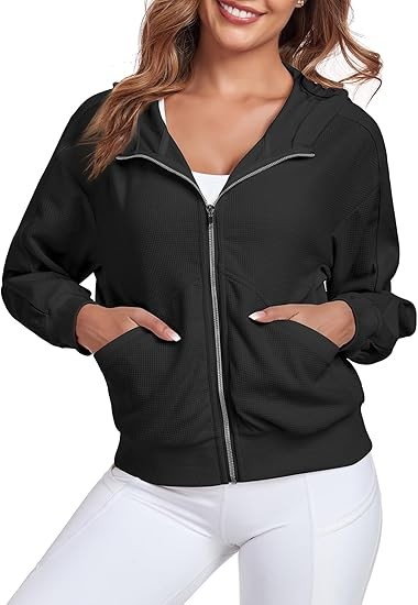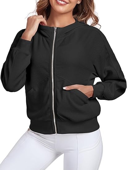 Occasion: Elevate your styling with the Women's zipper oversize jacket, This soft waffle jacket is perfect for indoor or outdoor activities such as workout, running, hiking, walking, climbing, cycling, jogging, fishing, golfing, hunting, skiing, camping Etc.
