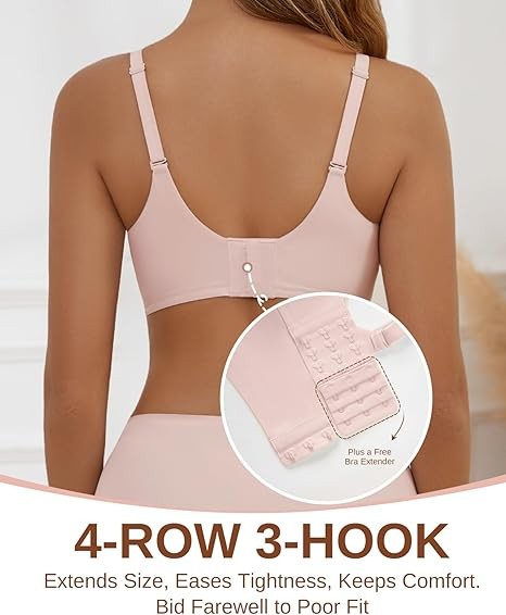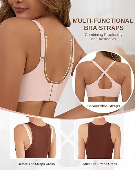 U-Shaped Back with Convertible Straps:The U-back construction provides balanced wear, reducing pressure on the shoulders and keeping the bra discreet under clothing. Adjustable crisscross shoulder straps offer multiple styling options, while the 4-Row 3-Hook back closure ensures a stable, personalized fit. Whether you're a petite or plus size, this full coverage bra adapts beautifully to your curves.
