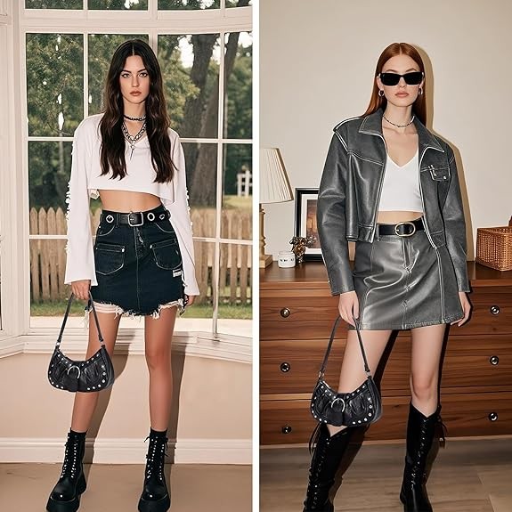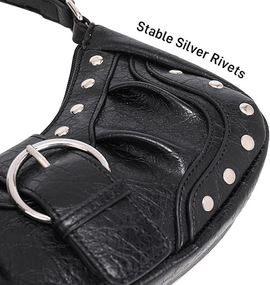Chic Rivets & Y2K Style: It is decorated with eye-catching rivet studs and a leather belt buckle. Its y2k style design with retro amber textured fabric offers a unique, elegant aesthetic that stands out in any crowd.