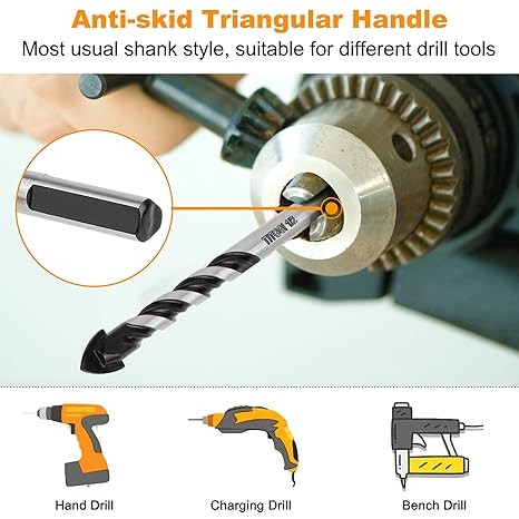 FAST PENETRATION; This masonry bit is suitable for most general drill, electric drill, hand drill and bench drill, the double U-type groove slot design brings fast drilling dust remove, and 3-flats shank allows drill bit easy plug and to be held tightly, strong tungsten carbide drill bit tip and longer service life of TITGGI masonry drill bit.