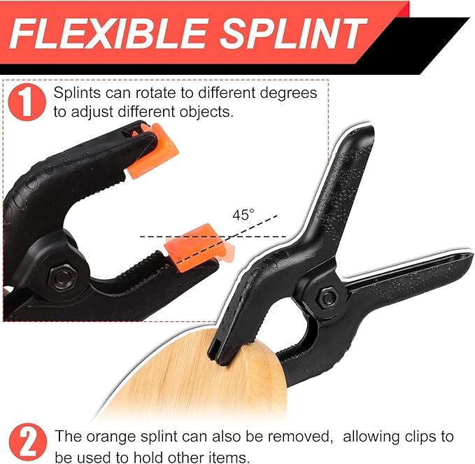 FLEXIBLE SPLINT: The orange splint is made of plastic material, not easy to scratch the surface of the object. Splints can rotate to different degrees to adjust different objects. the orange splint can also be removed, allowing chips to be used to hold other items. More flexible and convenient to use.