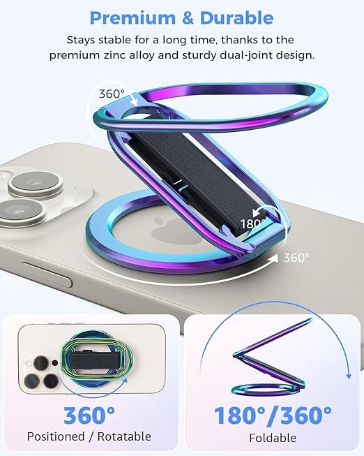 [?????-???? ?????] The iphone magsafe kickstand features a multi-angle adjustable kickstand that rotates 360°, with dual joints flipping 280° and 360°, tested to withstand 50,000 folds without getting loose. It provides hands-free viewing in both portrait and landscape modes. Use it as a magnetic phone stand to prop up your phone for watching videos, movies, YouTube, TikTok, taking selfies, or FaceTime someone.