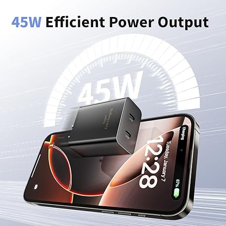2Pack USBC iPhone Chargers Widely Compatibility : This USB C fast charger block offers 45W fast charging for iPhone 17/17 Pro/17 Pro Max/Air/16/16 Pro/16 Pro Max/16 Plus/16e/15/15 Pro/15 Pro Max/15 Plus, 2022/2021/2020/2018 iPad Pro 12.9/11 inch 6th/5th/4th/3rd, iPad 10th Generation, iPad Air 5th/4th, iPad Mini 6 and more USB C device
