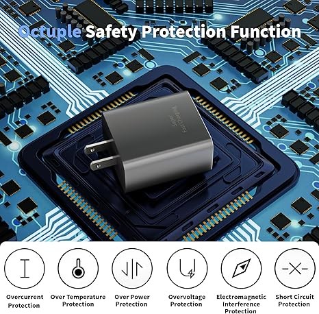 Secure & Reliable iPhone Fast Charger : Built-in intelligent chip and multiple safeguards system, this Apple 17 16 Charger Charging Block will automatically detect and adjust the power your device needs, also monitor temp and voltage in real time to protect against overvoltage, overcurrent, overheating, and short-circuit..When battery getting full through continuous high-speed charging, it will gradually decrease power to reduce heat and ensure your device’s safety and longevity