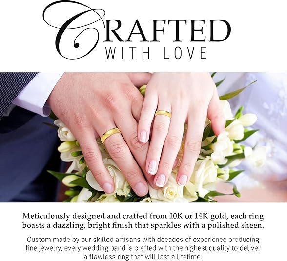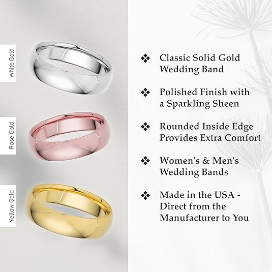 COMFORT GOLD RINGS FOR MEN AND WOMEN: Experience unmatched comfort with our unique design featuring rounded inside edges for a pleasant fit every day, all day. Enjoy a gold band that looks exquisite and feels just as wonderful.