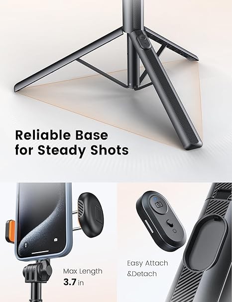 【Stable Base Design for Shake-Free Shooting】Equipped with a reinforced tripod base and non-slip silicone feet, this cell phone photo and video kits for iphone android provides stable support on most surfaces, reducing shaking during shots. The reliable stability of cell phone tripod stand ensures clear photos and videos, making professional video accessories ideal for those who prioritize steady filming.