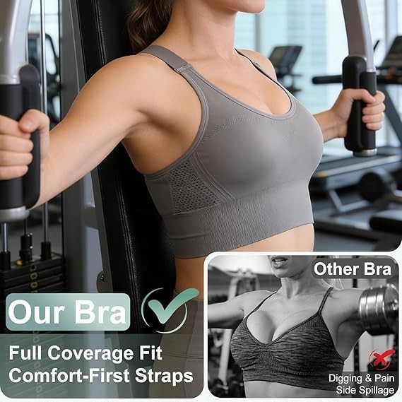 Wide Racerback Design: Engineered for high-intensity workouts, the upgraded wide straps evenly distribute pressure across shoulders and back—minimizing fatigue and discomfort while combining elegant aesthetics with functional performance.