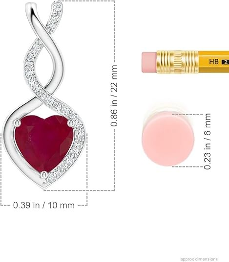 • About the Design: This 925 sterling silver pendant beautifully balances elegance and sparkle. A heart-shaped ruby is prong set within a gracefully entwined infinity twist, symbolizing everlasting love. Diamond accents partially adorn the frame, adding just the right touch of brilliance. This ruby pendant is minimal enough for everyday wear, yet special enough to be treasured forever.
