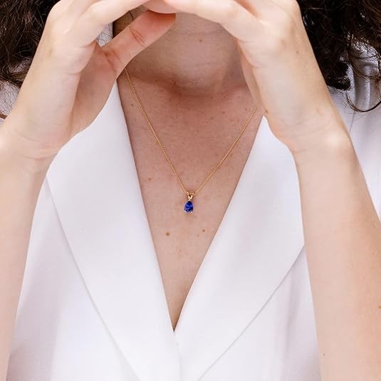 Angara Natural Tanzanite Solitaire Pendant for Women | V-Bale Pear-Shaped Tanzanite Solitaire Pendant in 14K Solid Gold/Silver/Platinum With 18" Chain | December Birthday, Gemstone Jewelry Gift