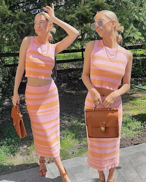 【Features】Women's sweater set/ two piece outfits/ 2 piece set/ tank crop tops for women/ sweaters tops / knitted pullover sweater/ high waisted skirt/ long midi skirt/ bodycon skirts for women/ women's pencil skirt/ trendy spring summer clothes