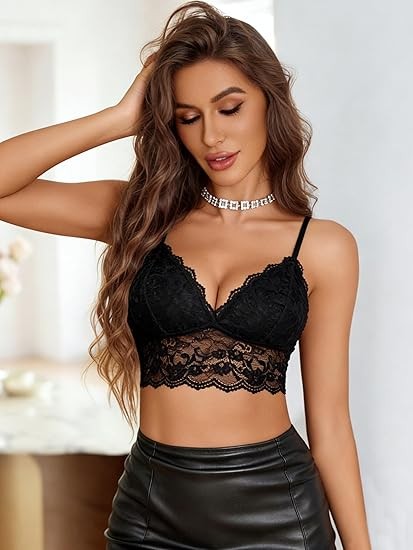 Avidlove Lace Bralettes for Women V Neck Spaghetti Strap Bra Unpadded Tops Sexy Cami Crop Top Going Out Lingerie