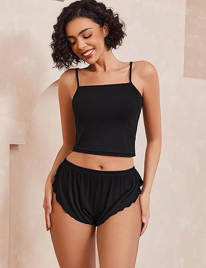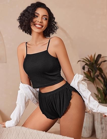 【2 PIECE SHORT PAJAMA SET】:This sexy pj set soft lingerie combines comfort and fashion,whether you are looking for sexy pajama set,summer lounge sets,cami and shorts set,sexy sleep set,camisole lingerie set,or 2 piece sleepwear,this versatile pajama set has you covered.
