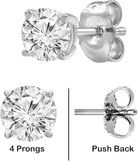 EVERLASTING SPARKLE: Featuring 4 carat total weight round cut sustainably created lab grown diamonds in brilliant cut, F-VS color clarity, these studs radiate clean, luminous sparkle. Precision-cut and accompanied by a manufacturer's Certificate of Authenticity, they bring effortless elegance to any day or occasion.