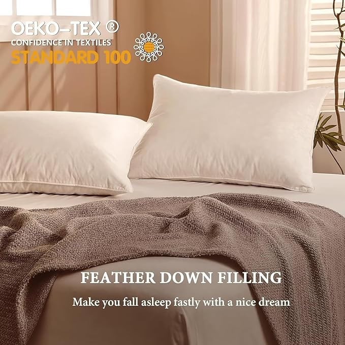 PERFECT SIZES FOR EVERY BED: Whether you have a cozy twin bed in a small guest room or a spacious king - sized bed in your master suite, our down pillow's standard size is the ideal fit. On a cold winter night, snuggle up with it on your queen bed, feeling its embrace as you read a book before sleep. In a dormitory, the standard size easily adapts to the twin bed, providing a touch of home comfort for students away from home.