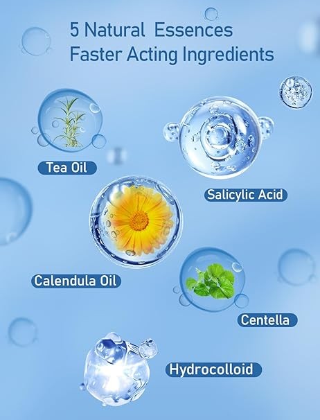 Natural ingredients - The pimple patches used on the face contain natural ingredients, including tea tree oil, salicylic acid, and marigold oil. These celebrity acne patches are an ideal choice for absorbing acne mucus and are safe and non irritating for all skin types (even sensitive skin)