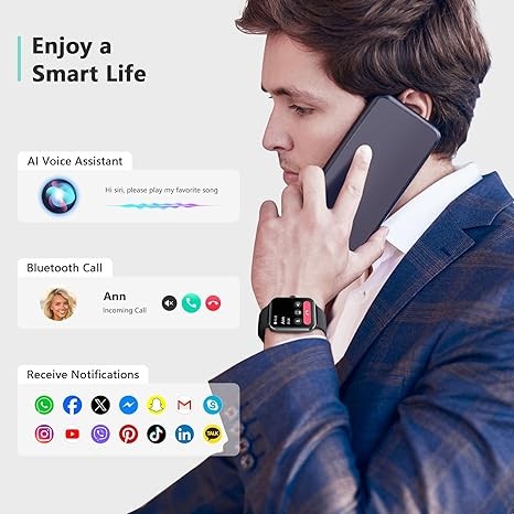?【Answer/Make Calls and AI Voice Assistant】Stay connected with family and friends anytime, anywhere with Blackview's built-in HiFi stereo speakers and microphone. Answer or make calls directly through the watch via Bluetooth. The "Da Fit" app stores multiple contacts and provides real-time notifications for incoming calls and messages, while the AI voice assistant can assist with quick help such as weather forecast and setting alarms.