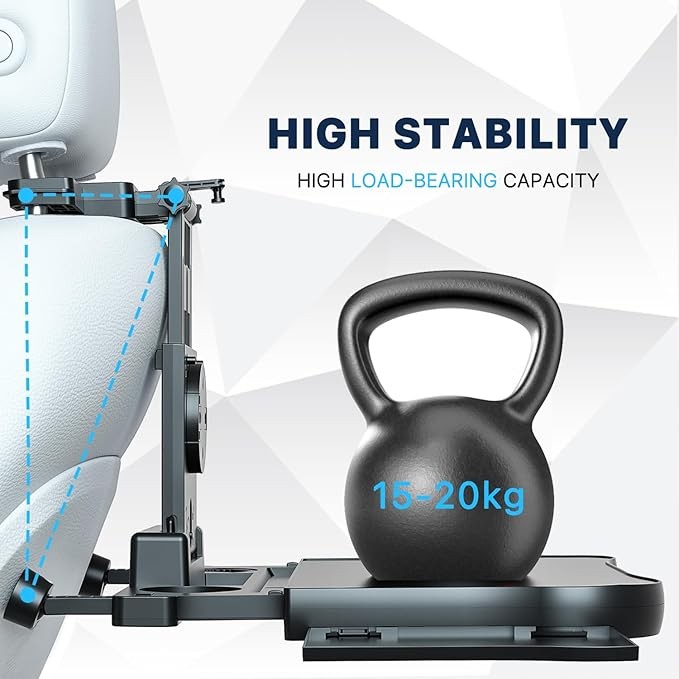 【LOAD CAPACITY 15-20KG】The foldable car backseat tray table can also be used to hold heavy objects. The backseat car table is made of high quality ABS material, durable, stable and sturdy, with an excellent load capacity of about 15-20 kg! It can be used in any situation. It's a great car gift!