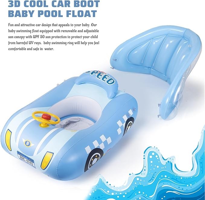 Interactive Steering Wheel: Designed to engage and entertain, the attached steering wheel lets your child enjoy imaginative fun while developing motor skills and hand-eye coordination, making every swim session both safe and playful.