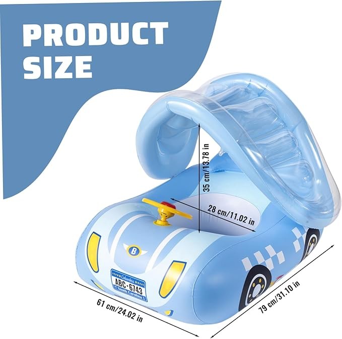 Sun Protection and Comfort: The built-in adjustable canopy protects your little one from harmful UV rays, providing essential sun protection and ensuring a comfortable, shaded environment during water play. Perfect for sunny pool days or beach outings.