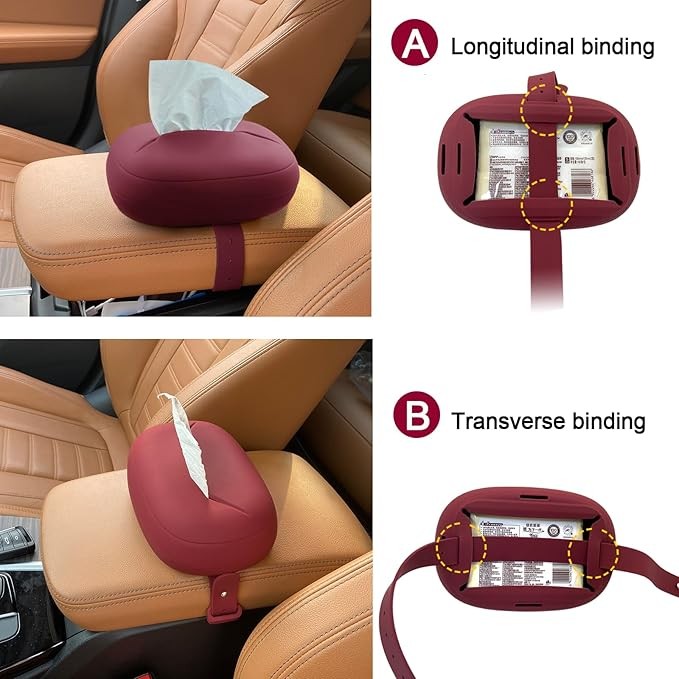Unique Design and Easy to Use:The soft silicone material design can quickly and easily solve any small troubles that may occur during driving; Easy to install, our car tissue dispenser features detachable and adjustable elastic straps that can be easily installed on sunshades, car seat backrests, and armrests, enhancing the overall decoration and level of the car interior