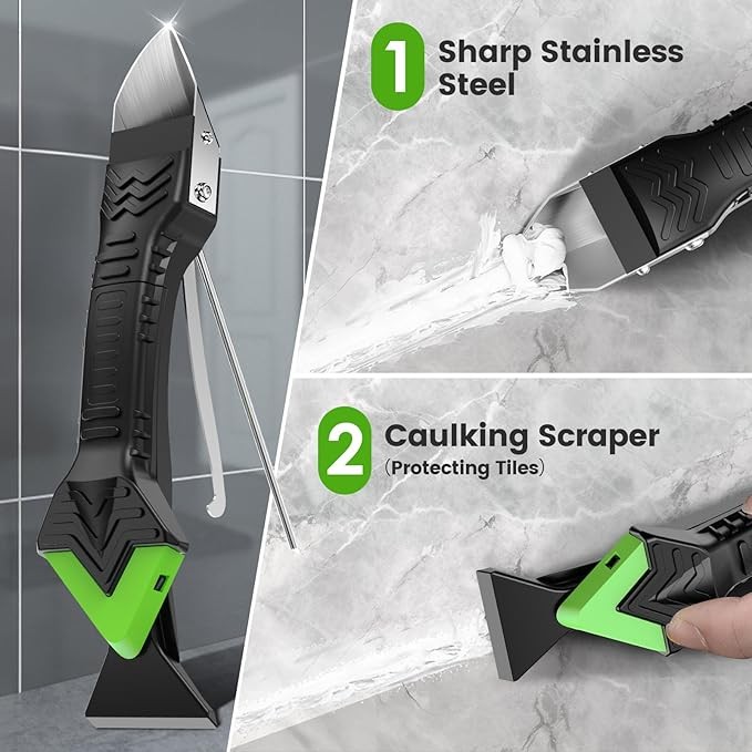 ❤️【Multifunctional Caulking Tools】The 5 in 1 upgraded caulking remover tools can not only help you repair the gap and clean the residual glue, but also help you fill the caulk with glue. It will improve the agglutinating quality and the aesthetic sense of surface.