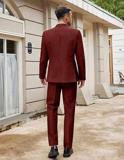 Textured Fabric - This men's 2 piece regular fit suit is made of wrinkle resistant and durable polyester. Fully lined design, tight stitching, and neat tailoring ensure you enjoy a quality textured fabric suit for men wearing experience.