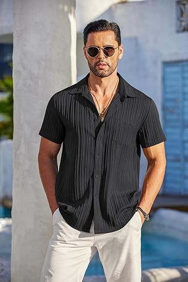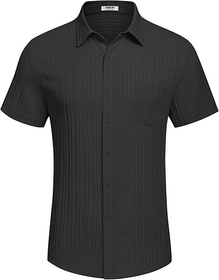 Unique Design --- Mens beach shirts features short sleeve, spread collar, button closure, chest pocket, relaxed fit. The unique slight vertical rib texture makes this shirt more stylish and simple