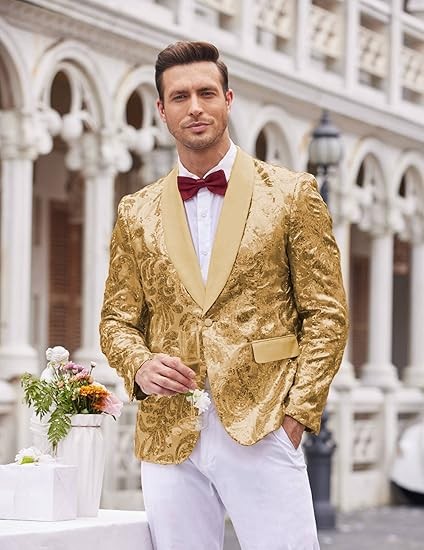 FASHION STYLE - This men's sparkle blazer features a stylish design with a shawl lapel, beautiful floral pattern and one button closure. Pair this glitter blazer for men with white dress shirt, a bow tie, classic black trousers and a pair of leather shoes to make you stand out from the crowd.