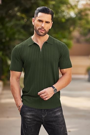 【KNIT FABRIC】: This zipper polo shirt is made of ribbed fabric that is lightweight, skin-friendly and durable. The exquisite stitching adds a premium touch, while good stretch, allowing for easy movement without compromising on style.