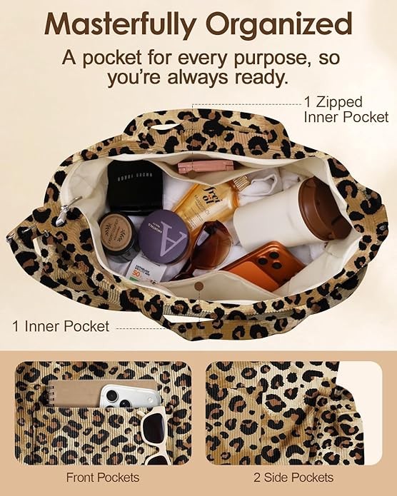 Premium Corduroy Material: Crafted from premium corduroy fabric, this tote bag is soft to the touch, lightweight, and durable. The textured material adds a cozy yet stylish vibe to your outfit, making it ideal for everyday use. Its high-quality construction ensures long-lasting wear while maintaining comfort and practicality