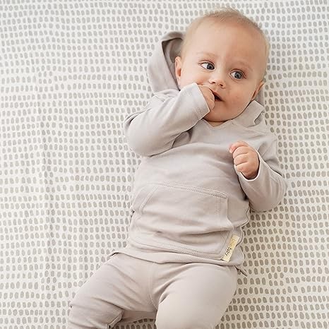 Soft & Gentle Comfort – Made from 100% jersey cotton for a soft, breathable, t-shirt-like feel that’s gentle on baby’s delicate skin, perfect for a gender-neutral nursery in Grey Splash & Stripes.