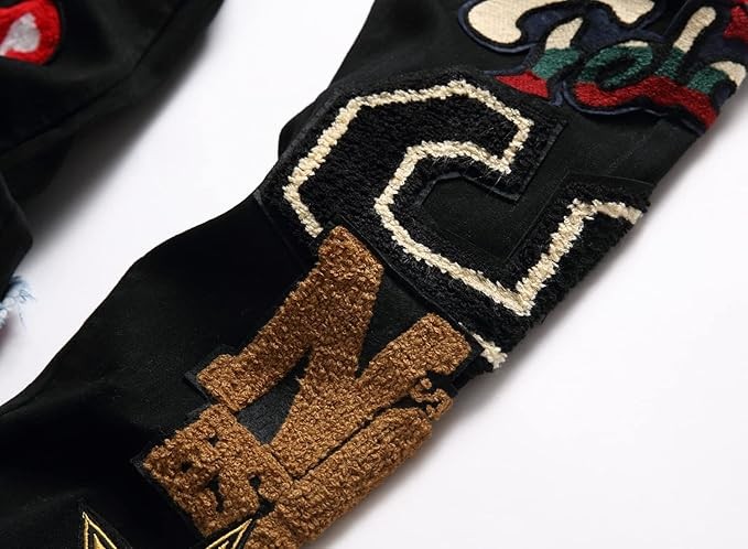 Enrica Men's Ripped Straight Slim Moto Biker Jeans