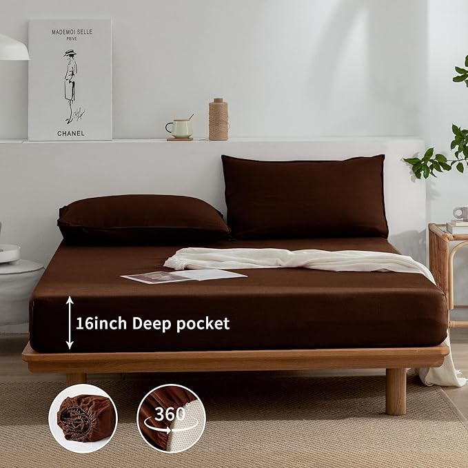 Complete Bedding Set: This 4-piece set includes 1 flat sheet, 1 fitted sheet with elastic all around for deep pocket mattresses up to 16", and 2 standard pillowcases.