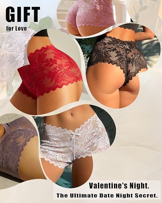 SEXY LACE PANTIES FOR DATE NIGHTS -- Delicate lace with a flattering boyshort cut adds a sexy yet elegant look, perfect for date nights when you want to feel confident and feminine. Soft, stretchy, and breathable lace fabric provides all-day comfort, making these boyshort panties ideal for daily wear, work, or relaxing at home. Also Perfect Gift for Your Wife