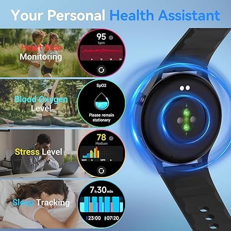 【Comprehensive Health Monitoring】This advanced fitness tracker monitors your heart rate, SpO2 (blood oxygen) levels, breathing rate, stress management score and menstrual health (Non-medical use). Sleep smarter by automatically recording your nightly rest, including light, deep, and REM sleep stages