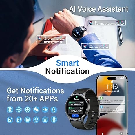 【Stay Connected on the Go】Enjoy a 1.3-inch AMOLED touch screen with always-on display mode and customizable watch faces. Get clear, vibrant visuals, whether indoors or outdoors. Effortlessly make and receive calls with the built-in Bluetooth connectivity, and stay updated with call, text, and app notifications right on your wrist