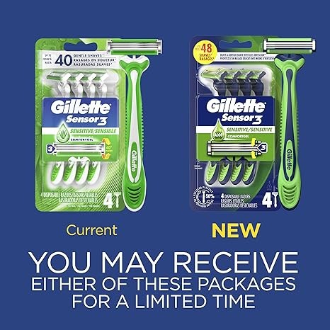 Gillette Sensor3 Sensitive Men's Disposable Razor, 4 Razors