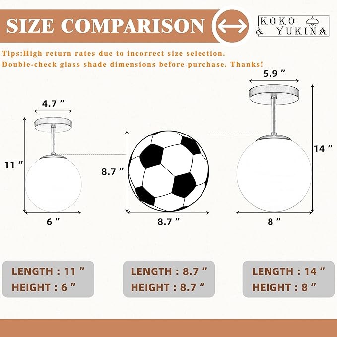 【Dimension】8" Dia x 14" H. Ceiling Canopy 5.9" Dia x 1" H