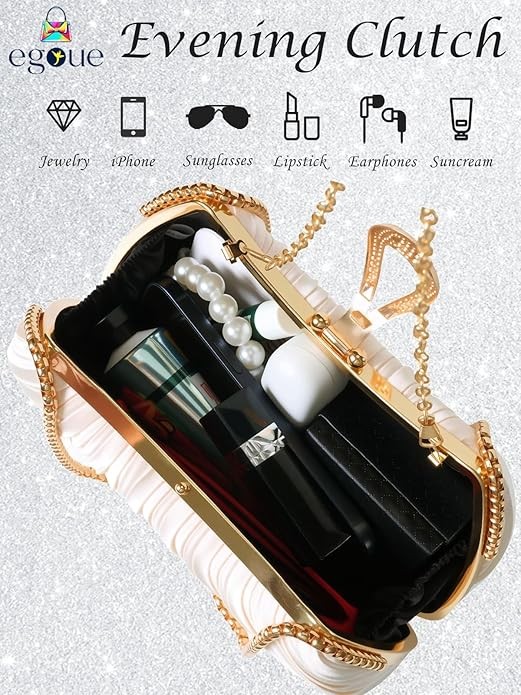 ⭐️ Premium Craftsmanship: Made from high-quality pleated silky fabric, our clutch purses for women deliver luxurious comfort and durability with tightly stitched lining, ensuring it withstands daily wear while feeling soft against your skin for any glamorous night out.