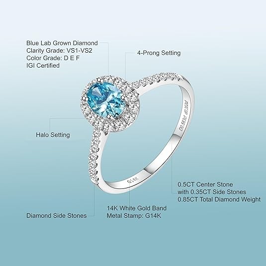 Halo 14k White Gold 0.5 to 2.5 Cttw IGI Certified LAB Grown Diamond Engagement Rings with Side Stones, Anniversary Wedding Promise Rings Jewelry Gifts for Women, Clarity VS1-VS2, D E F Color