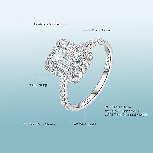 Engagement Rings for Women. The lab grown diamond stone is superior clarity VS1-VS2 and near-colorless D E F color grade, completely clear to the eyes and offers a sparkle that doesn't dull over time.