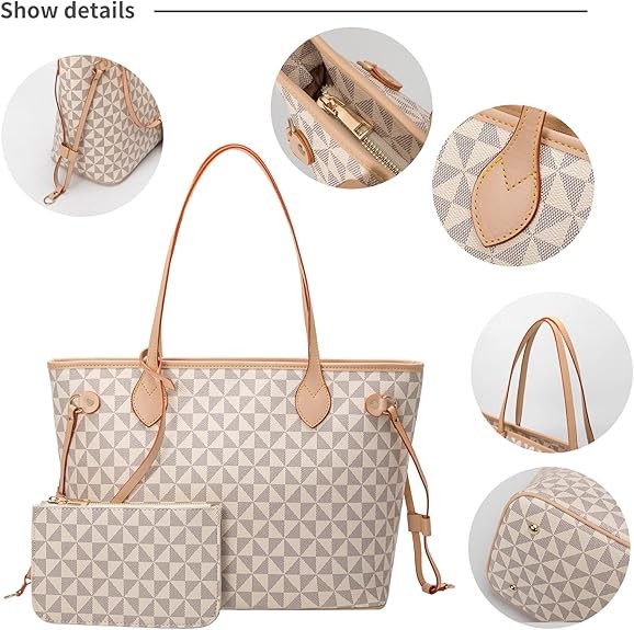 White Handbags/Satchels: (L) 12.6 inches x (W) 6.7 inches x (H) 10.6 inches (32 cm x 17 cm x 27 cm). Clutch bag purse: (L) 7.9 inches x (W) 5.1 inches. The handbag is large but not bulky. It can hold a 12” tablet, makeup, cell phone, small water bottle, A4 laptop and your daily essentials.