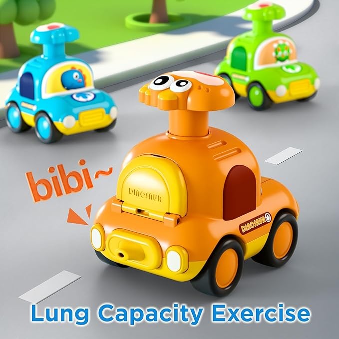 【Interactive Whistle Sound】Every vehicle features a fun whistle to blow, developing baby's lung function and giving a fun interactive twist to these toys.